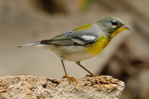 A chestnut sided warbler rests on a rock in Kentucky.