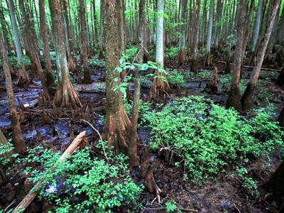 This conservation area covers 427 acres of bottomland hardwood forest in the Wolf River floodplain.